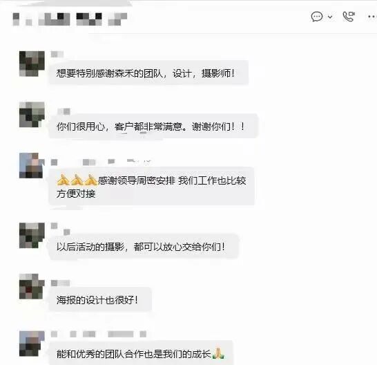 “想要特别感谢森禾的团队,设计、摄影师!你们很用心,客户都非常满意。谢谢你们!以后活动的摄影,都可以放心交给你们!海报的设计也很好!”